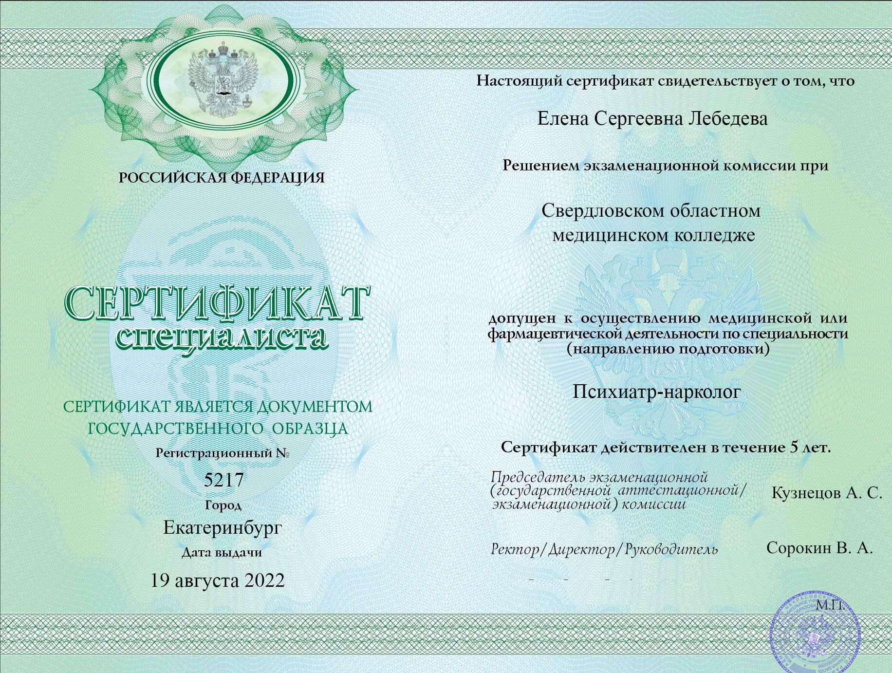 Елена Сергеевна Лебедева врач нарколог клиники доктора Стукаловой в Пологах